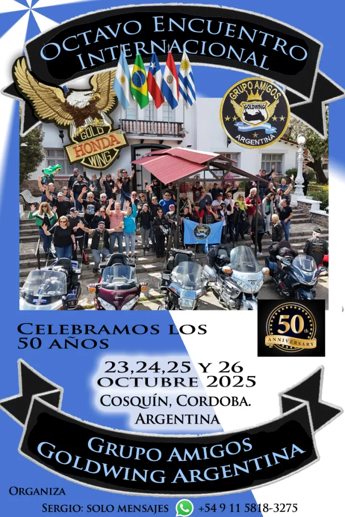 Este encuentro no solo simboliza la historia de la Goldwing, sino que también marca un hito: ser el primer grupo en Argentina en organizar encuentros internacionales dedicados a esta leyenda del motociclismo, reuniendo cada año a amigos de diversos países de Sudamérica — Brasil, Chile, Colombia, Costa Rica, México, Paraguay, Uruguay — y que ya han disfrutado de ocho encuentros y múltiples reuniones en diferentes provincias y países limítrofes.